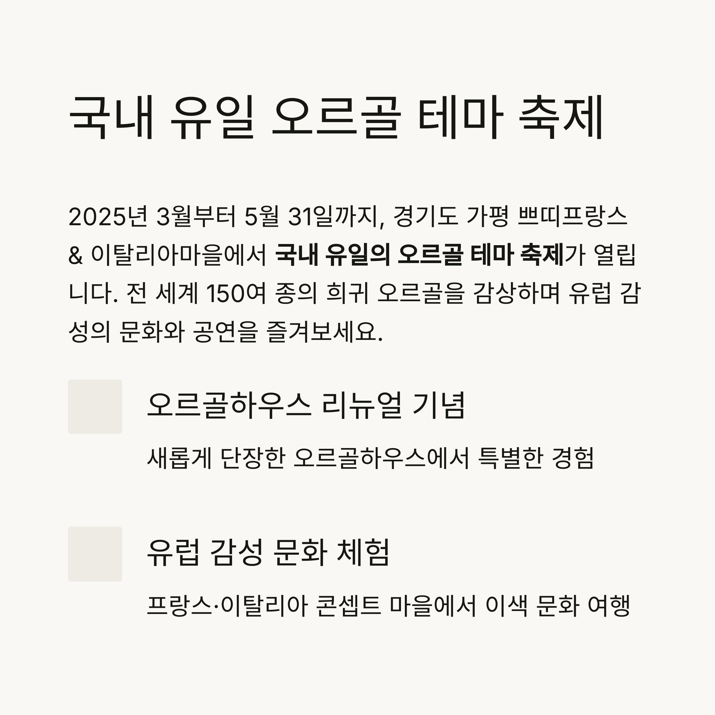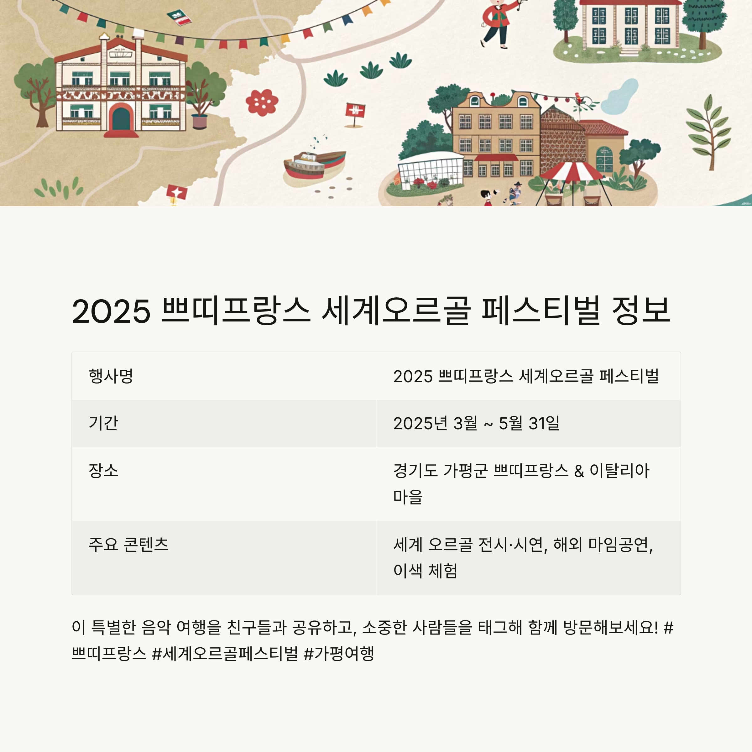 | 행사명 | 2025 쁘띠프랑스 세계오르골 페스티벌 |