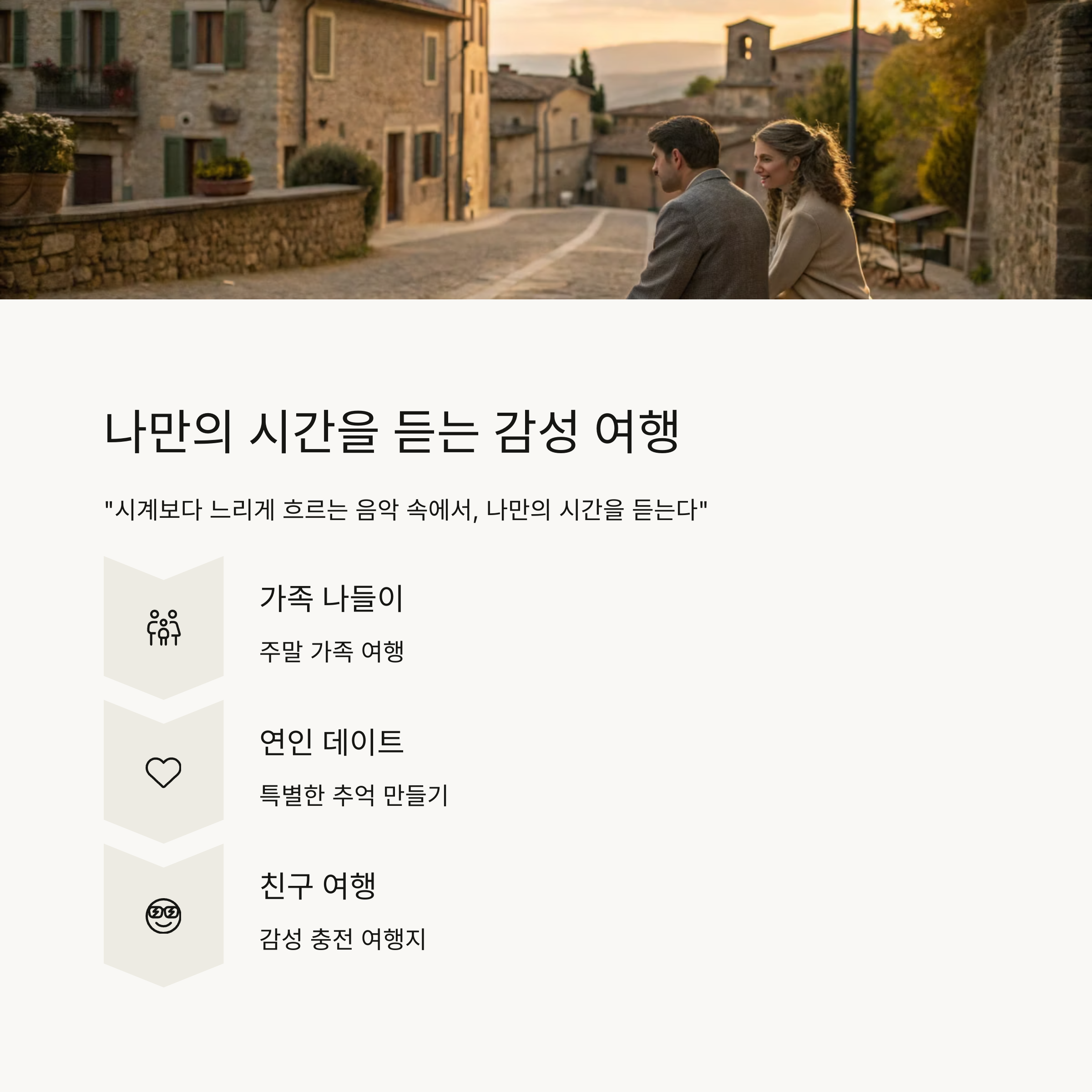 복잡한 일상에서 벗어나 감성과 낭만을 회복하는 예술적 휴식처입니다.