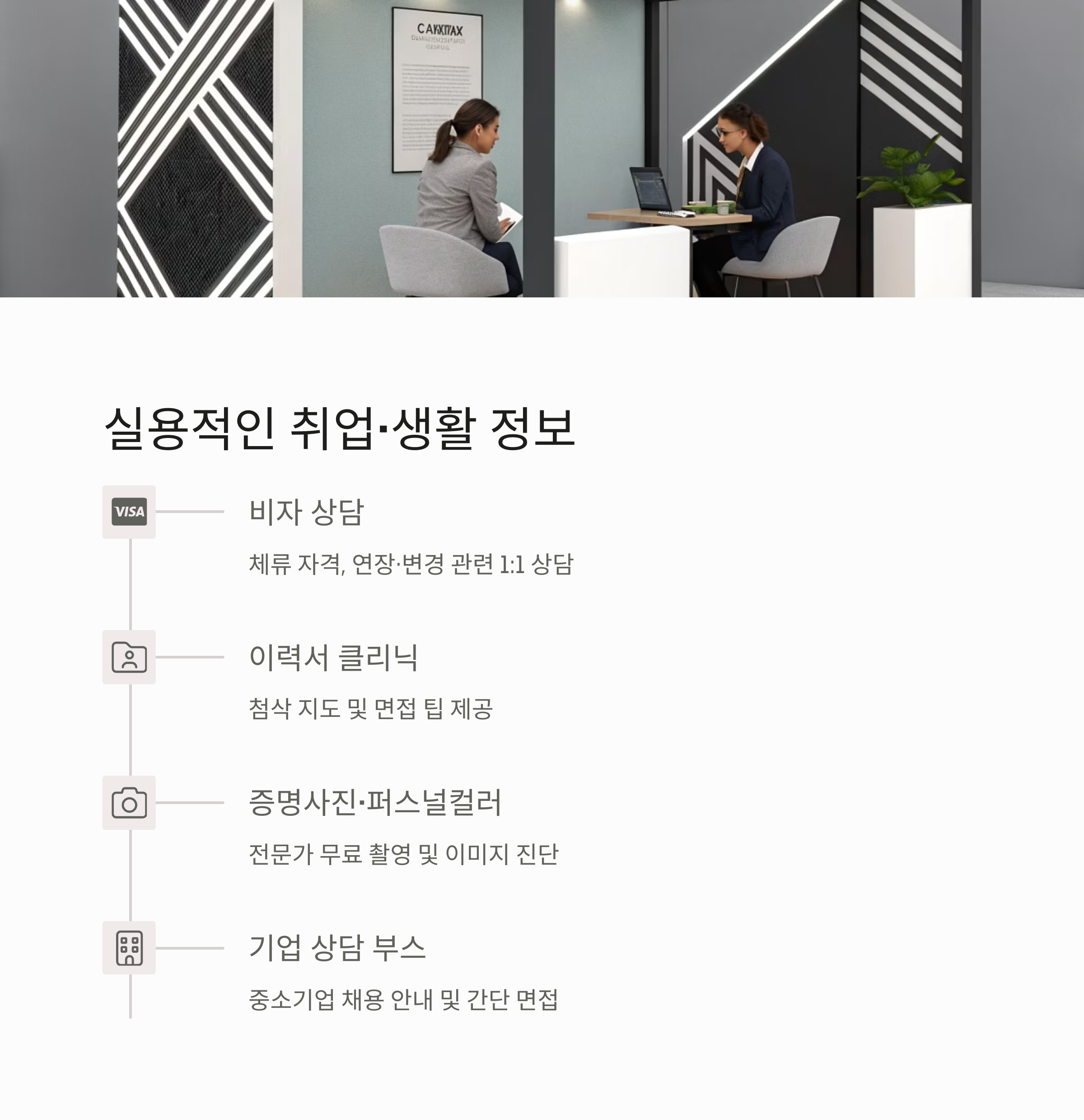 비자 상담, 이력서 클리닉, 증명사진 촬영, 퍼스널컬러 진단 등