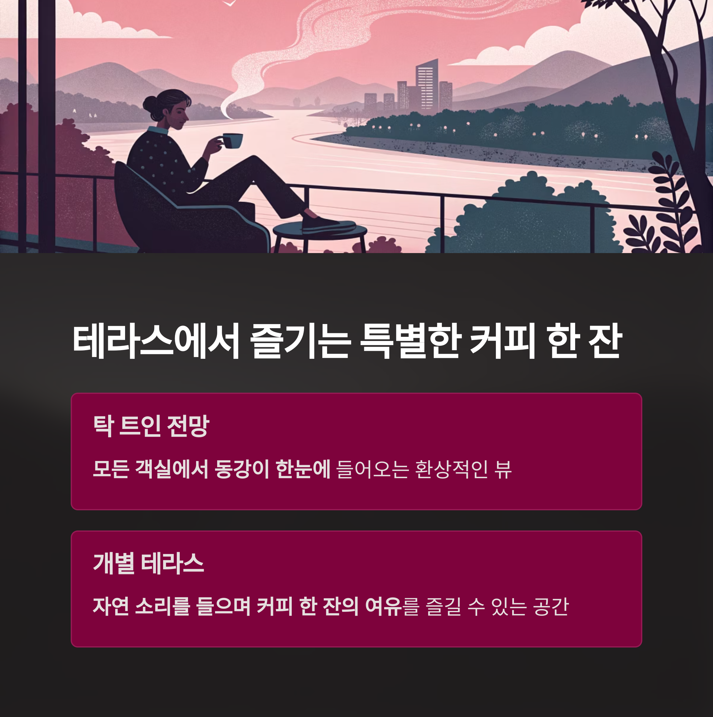 전 객실 동강뷰, 테라스에서의 커피 한 잔이 특별한 이유