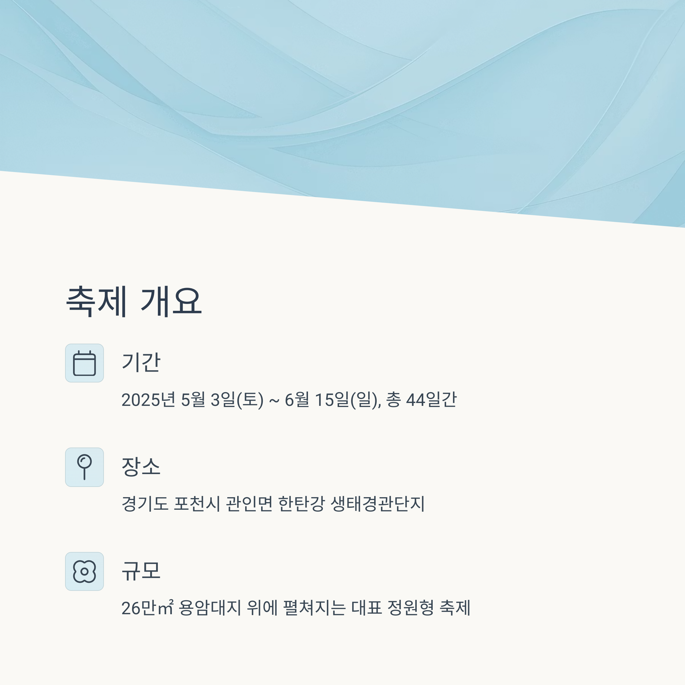 단순한 꽃구경을 넘어 농업, 생태, 문화, 예술을 결합한 체험형 축제입니다.