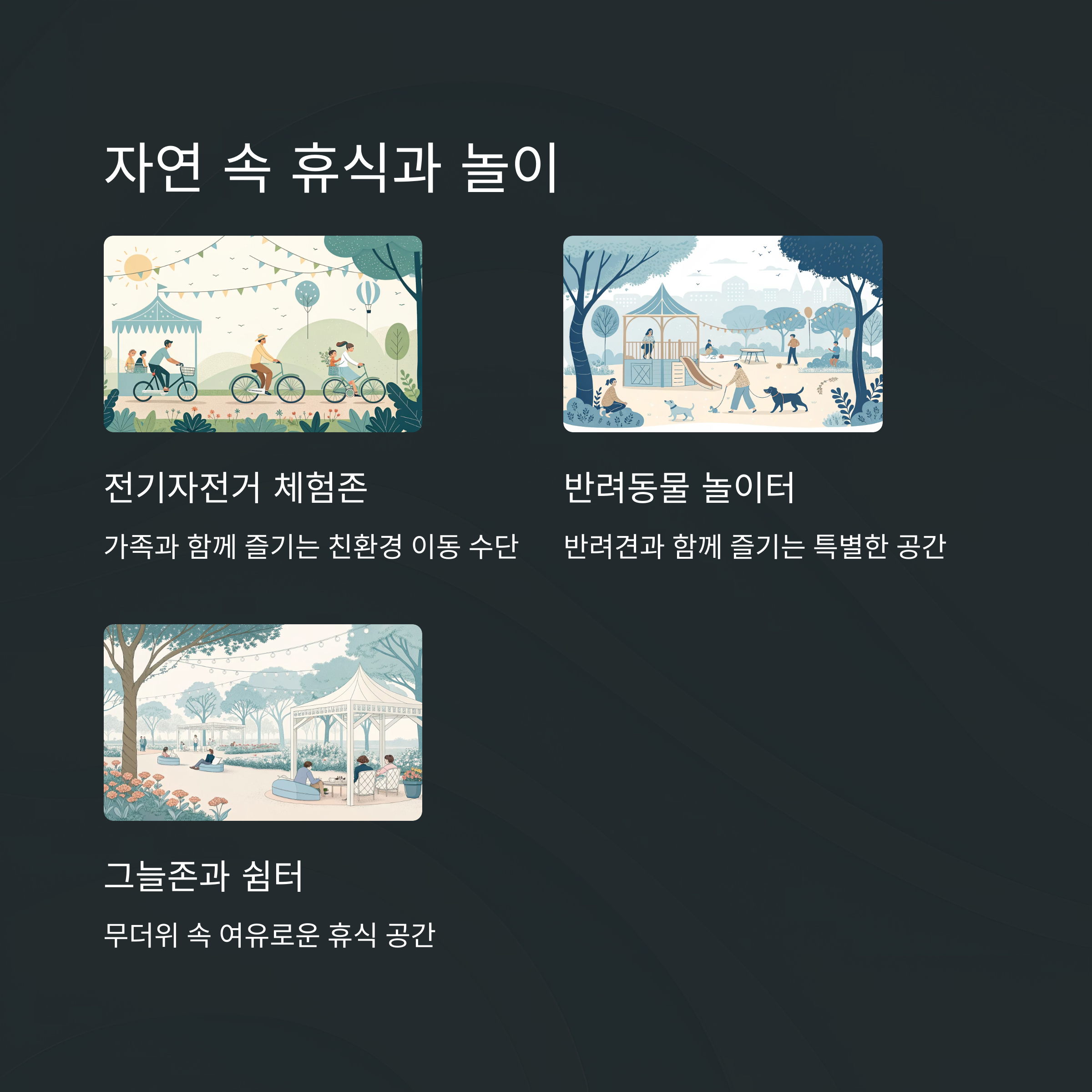 자연 속 휴식과 놀이, 전기자전거·반려견 놀이터