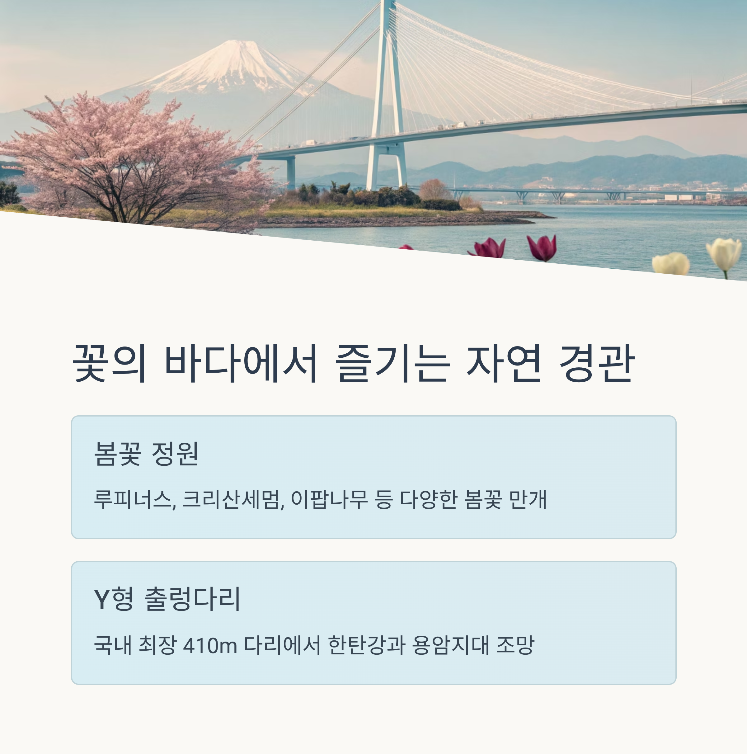 꽃길을 따라 걷다 보면 국내 최장 410m의 Y형 출렁다리가 펼쳐지며