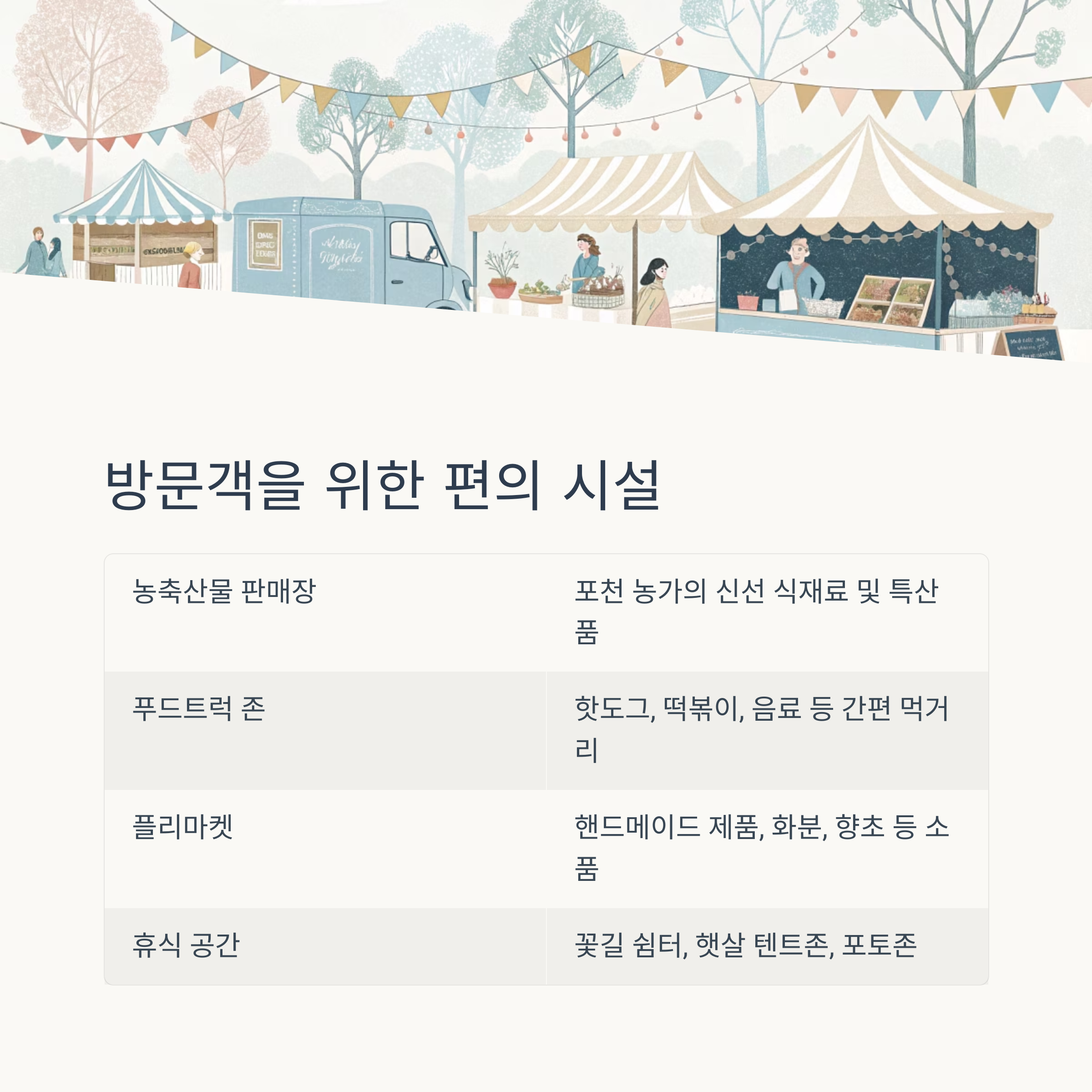 | 휴식 공간 | 꽃길 쉼터, 햇살 텐트존, 포토존 |