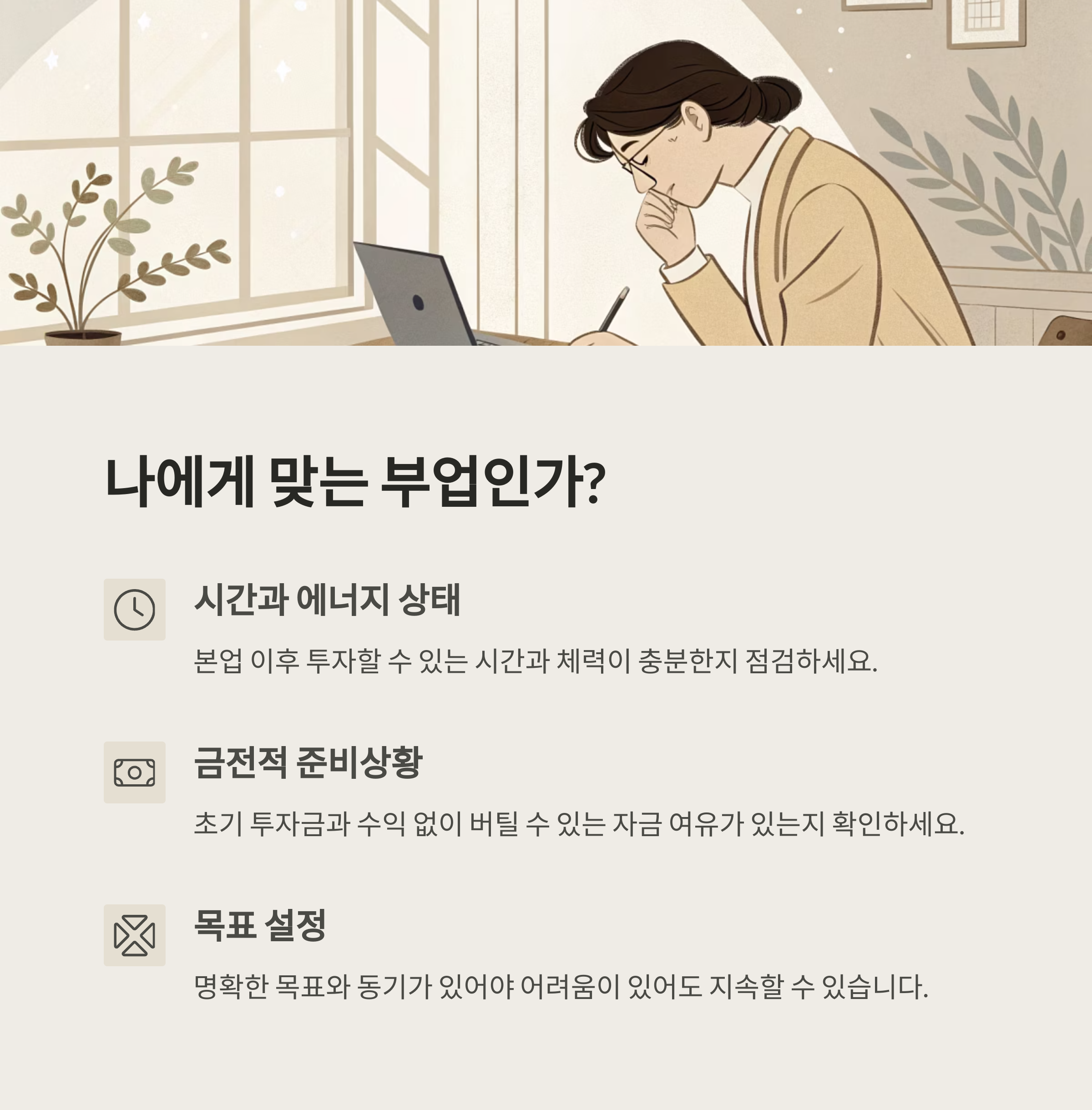 중요한 건 지금 내 상황과 목표가 부업에 적합한가입니다.
