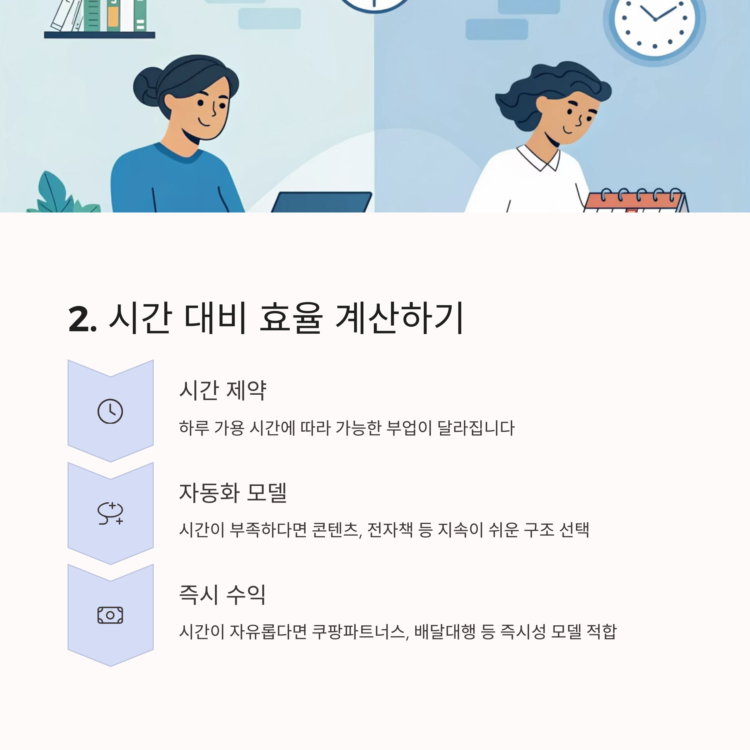 하루에 쓸 수 있는 시간이 1시간이냐 5시간이냐에 따라 가능한 부업군이 달라집니다.
