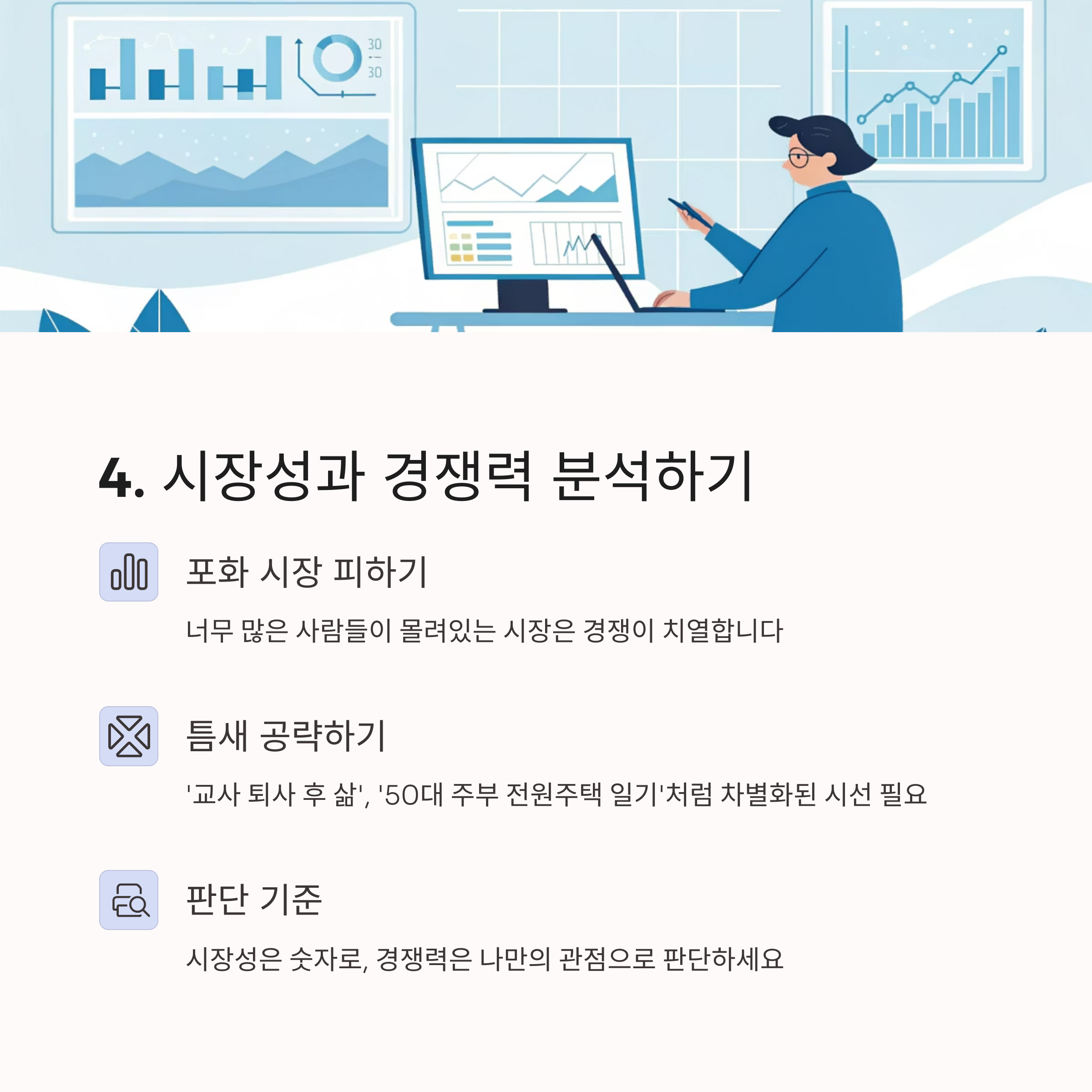 시장성은 숫자로, 경쟁력은 나만의 관점으로 판단하세요.