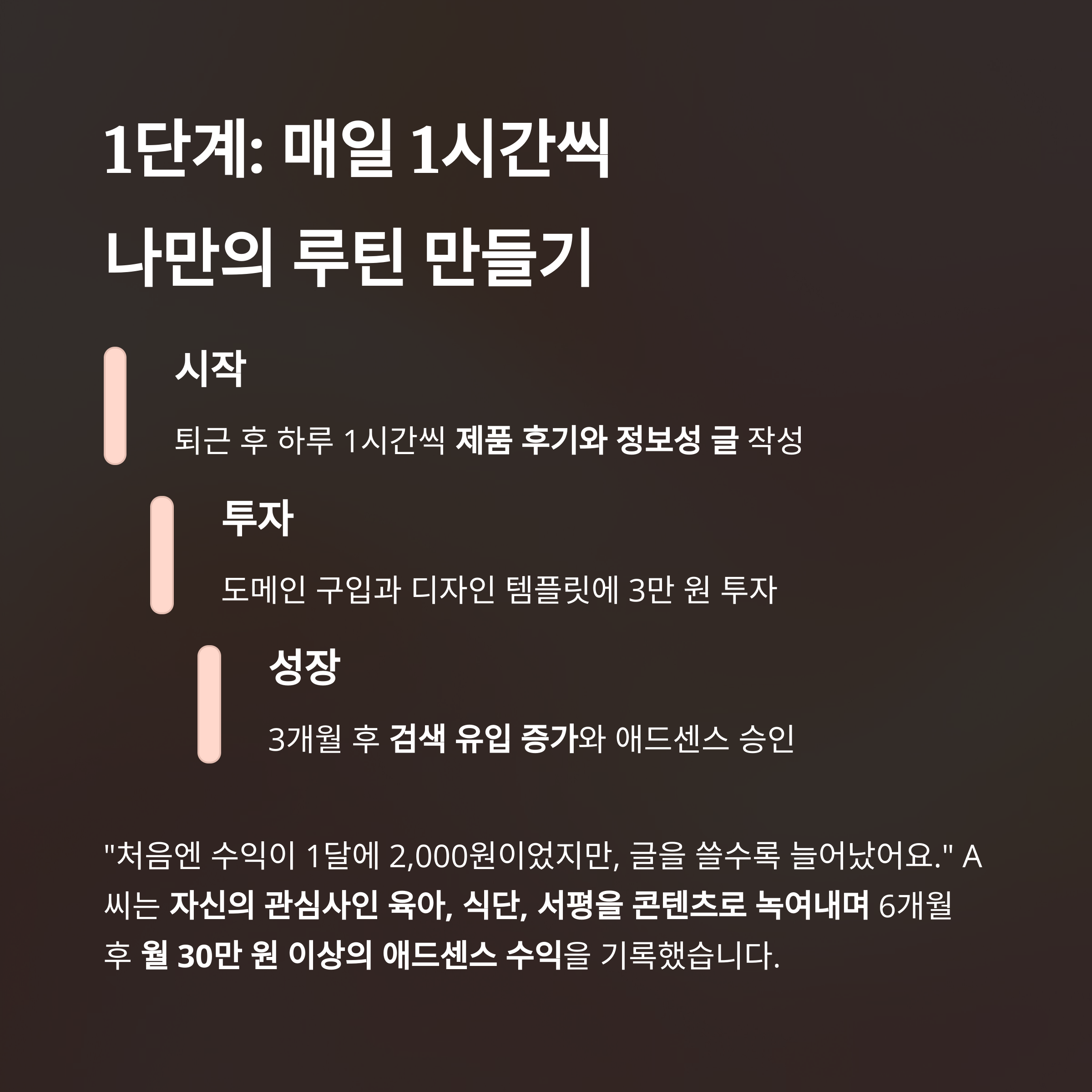 | 성공 요인 | 꾸준함, 검색 전략, 콘텐츠 확장 |