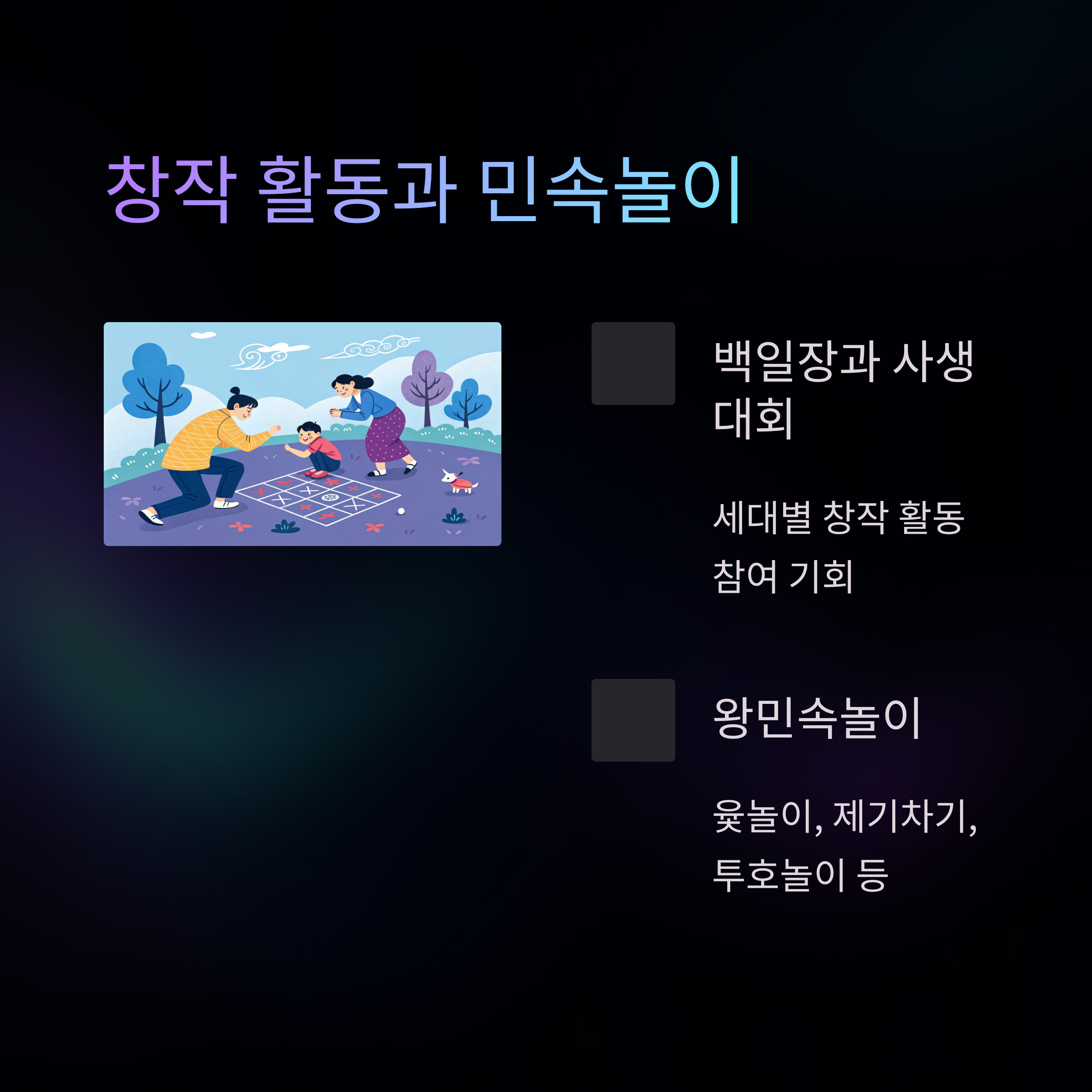 가족 간의 유대감 형성과 전통문화 이해 증진에 기여하는 공간입니다.