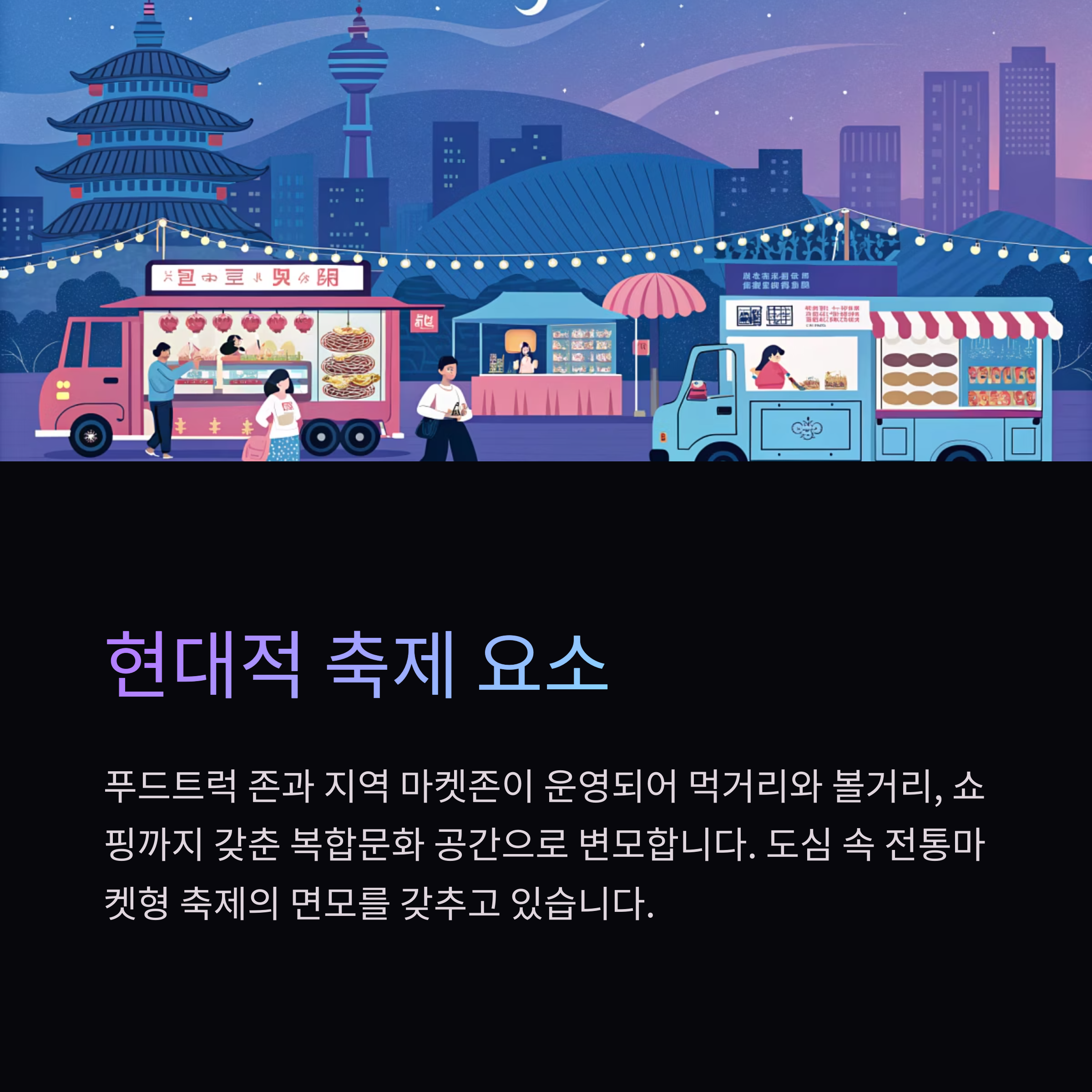 단순한 문화제를 넘어 도심 속 전통마켓형 축제의 면모를 갖추게 됩니다.