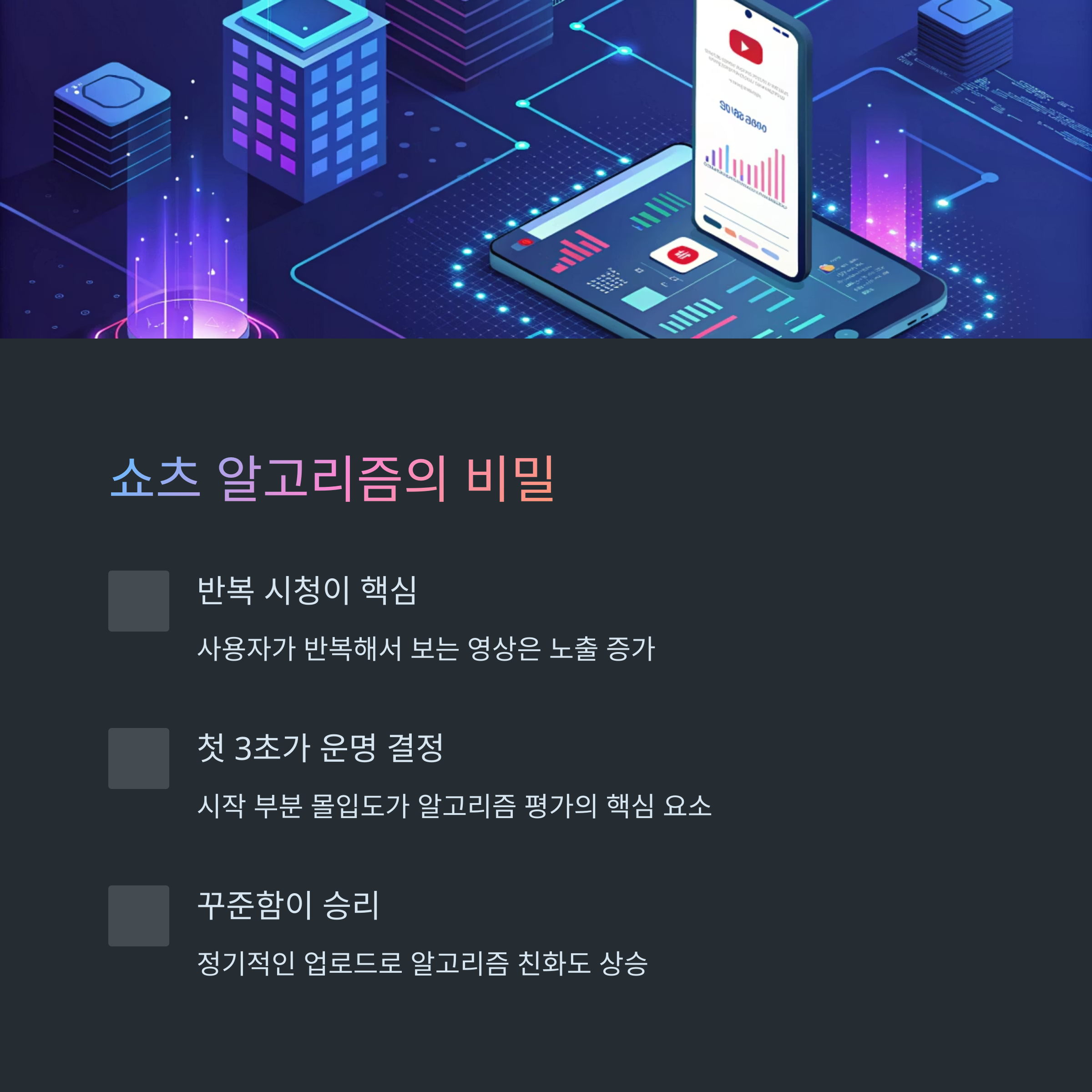 유튜브 쇼츠는 일반 영상과 다른 알고리즘을 사용합니다.