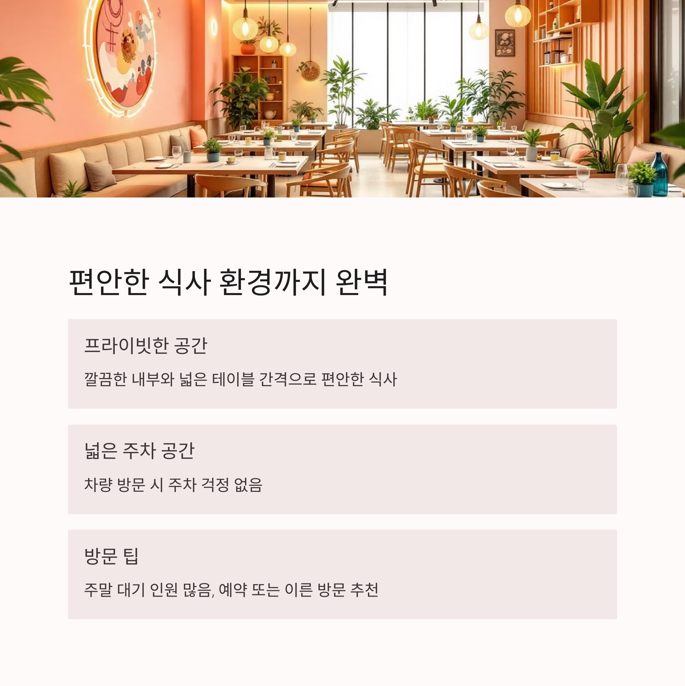 넓은 주차장을 보유하고 있어 차량 방문도 편리하며,