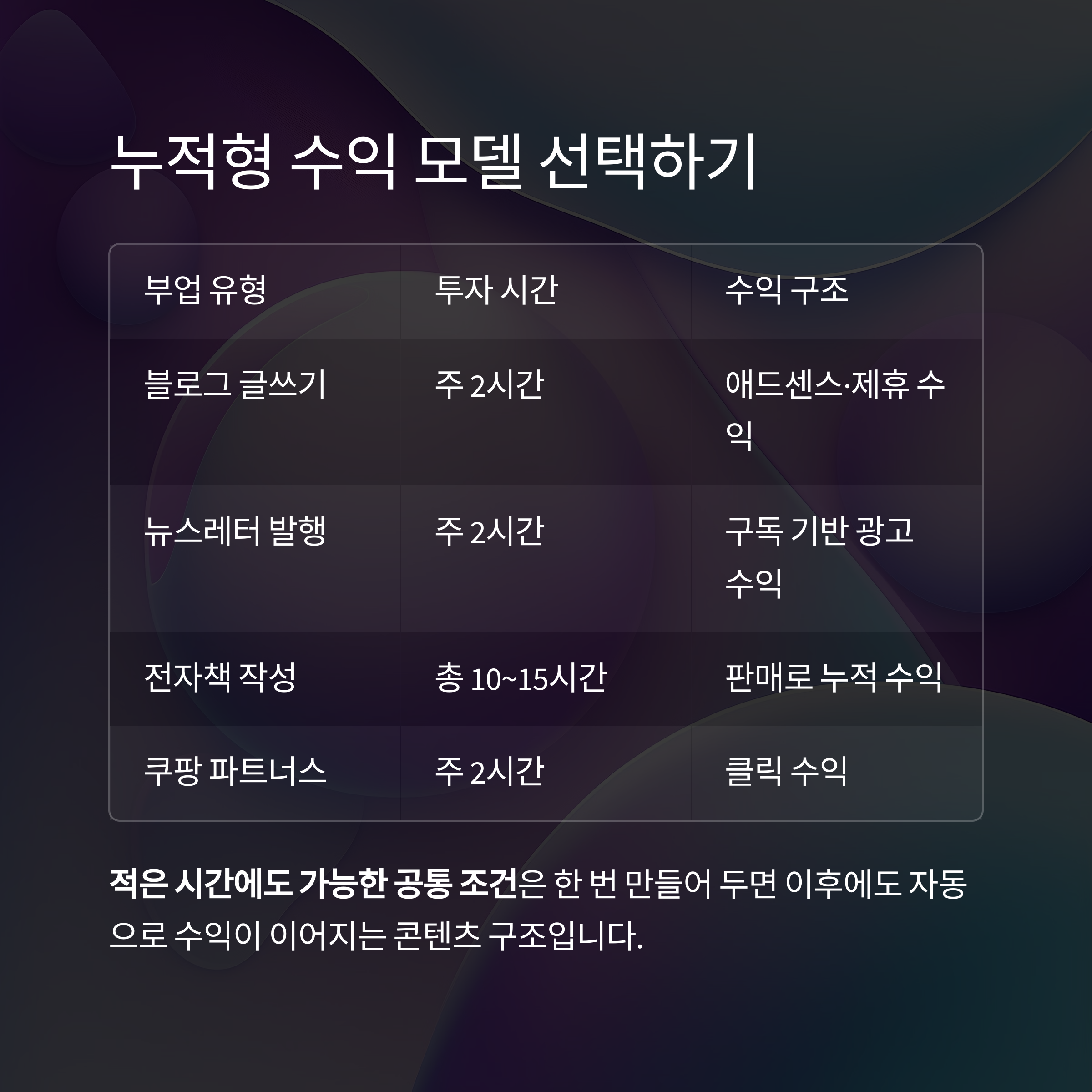 핵심은 '누적형 수익 모델' 선택, 시간은 적고 수익은 쌓이게