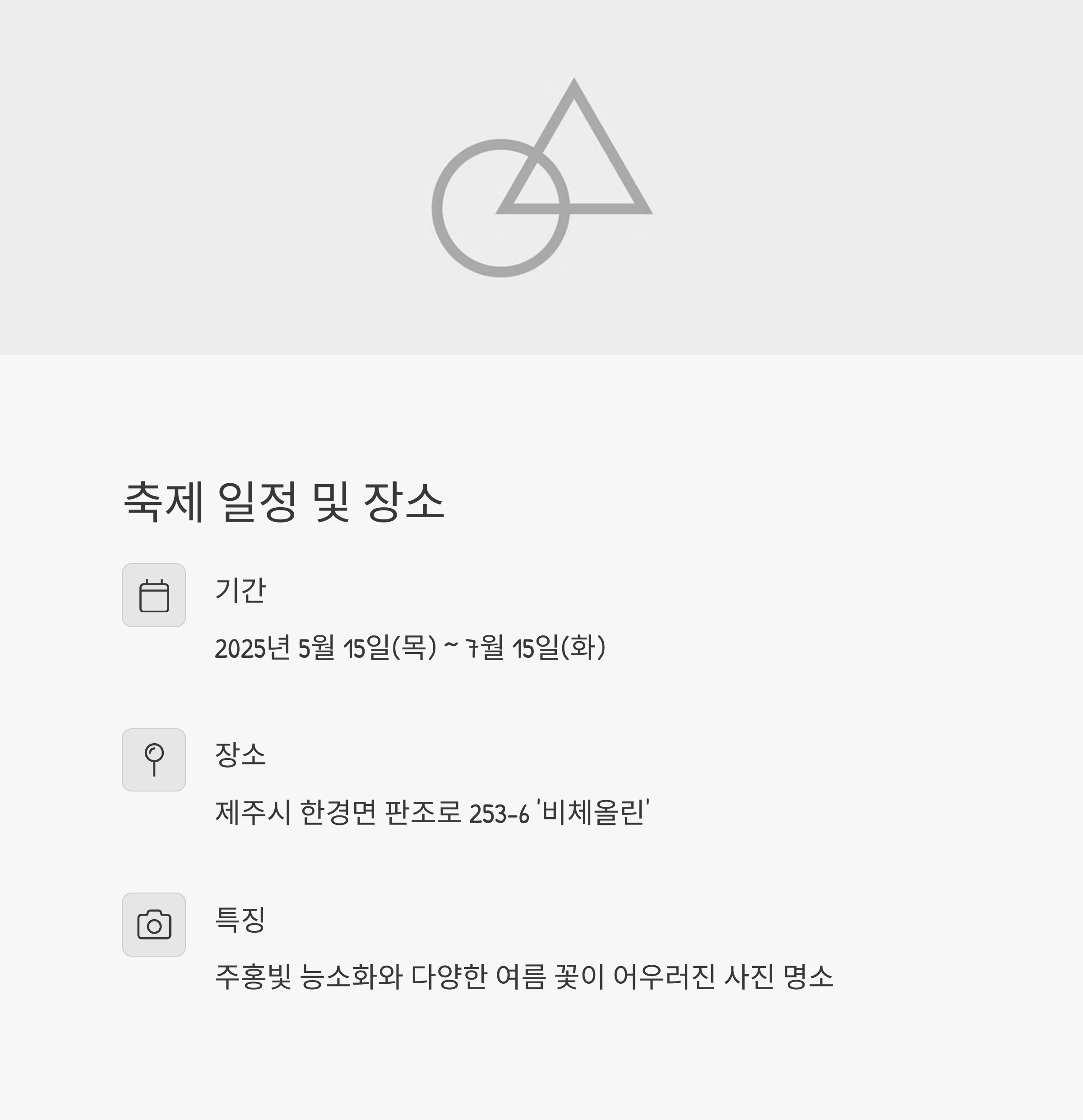 | 장소 | 제주 제주시 한경면 판조로 253-6 (비체올린) |