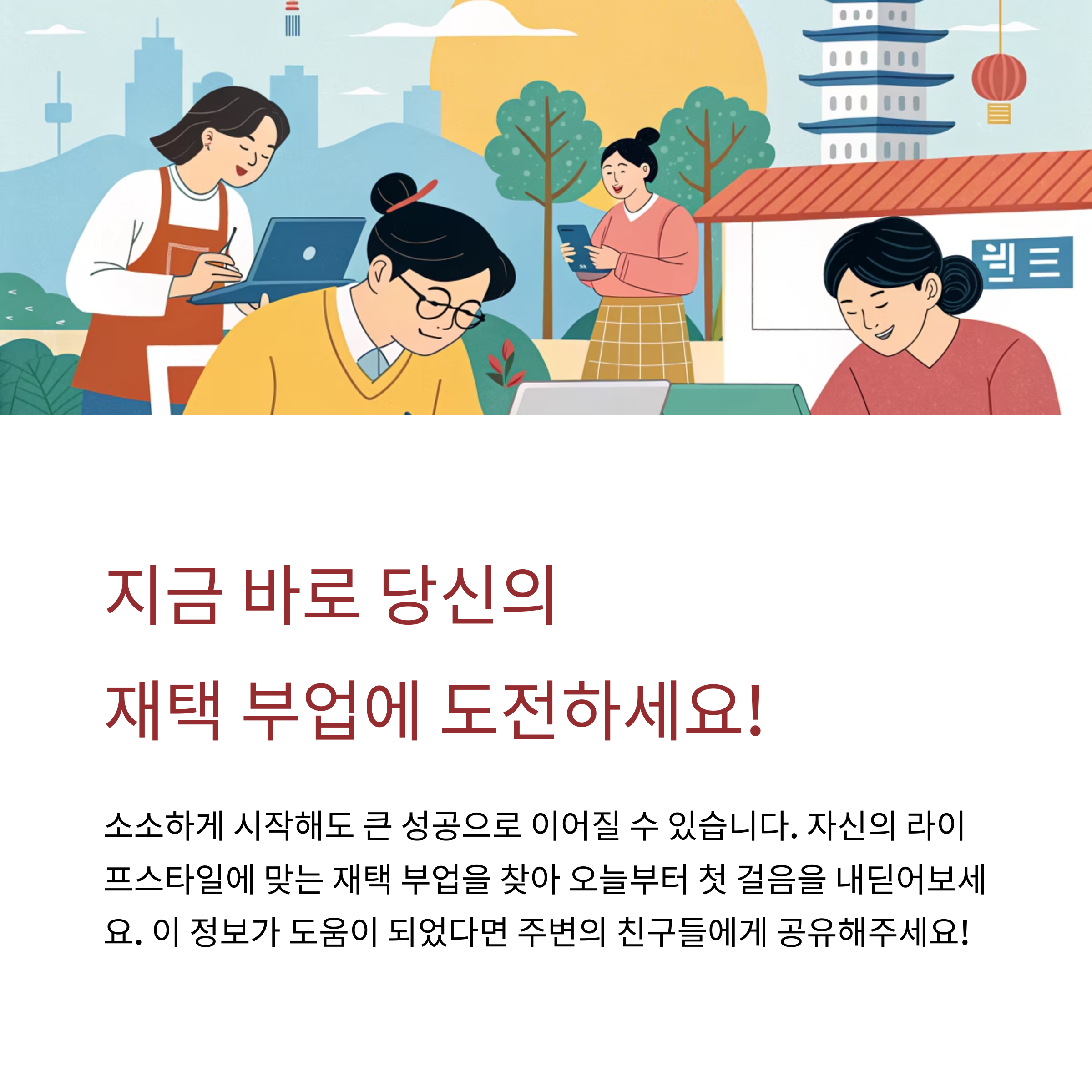 시간, 성향, 기술 수준에 따라 적합한 부업은 다릅니다.