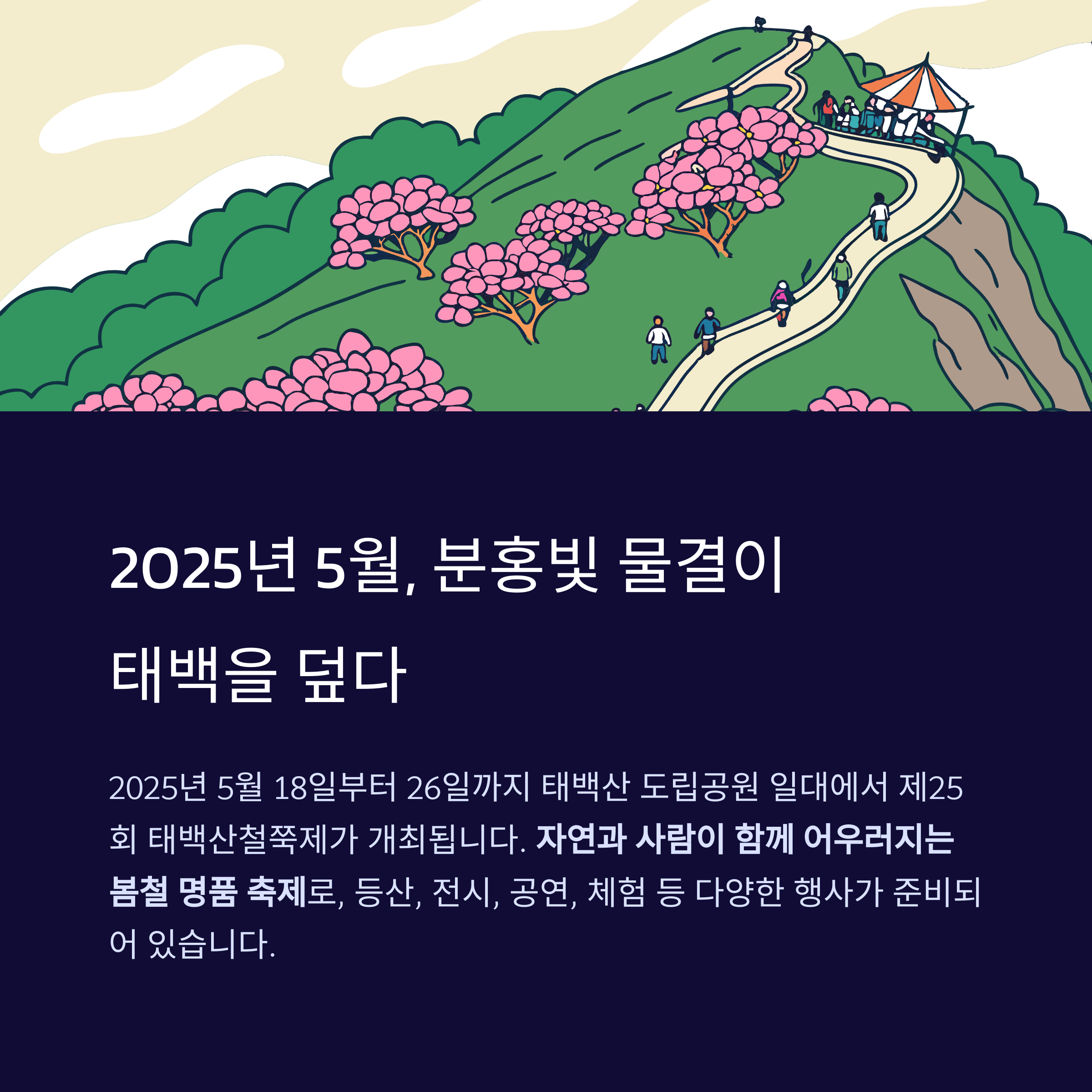 5월 25일에는 대표 행사인 ‘태백산철쭉전국등반대회’가 열립니다.