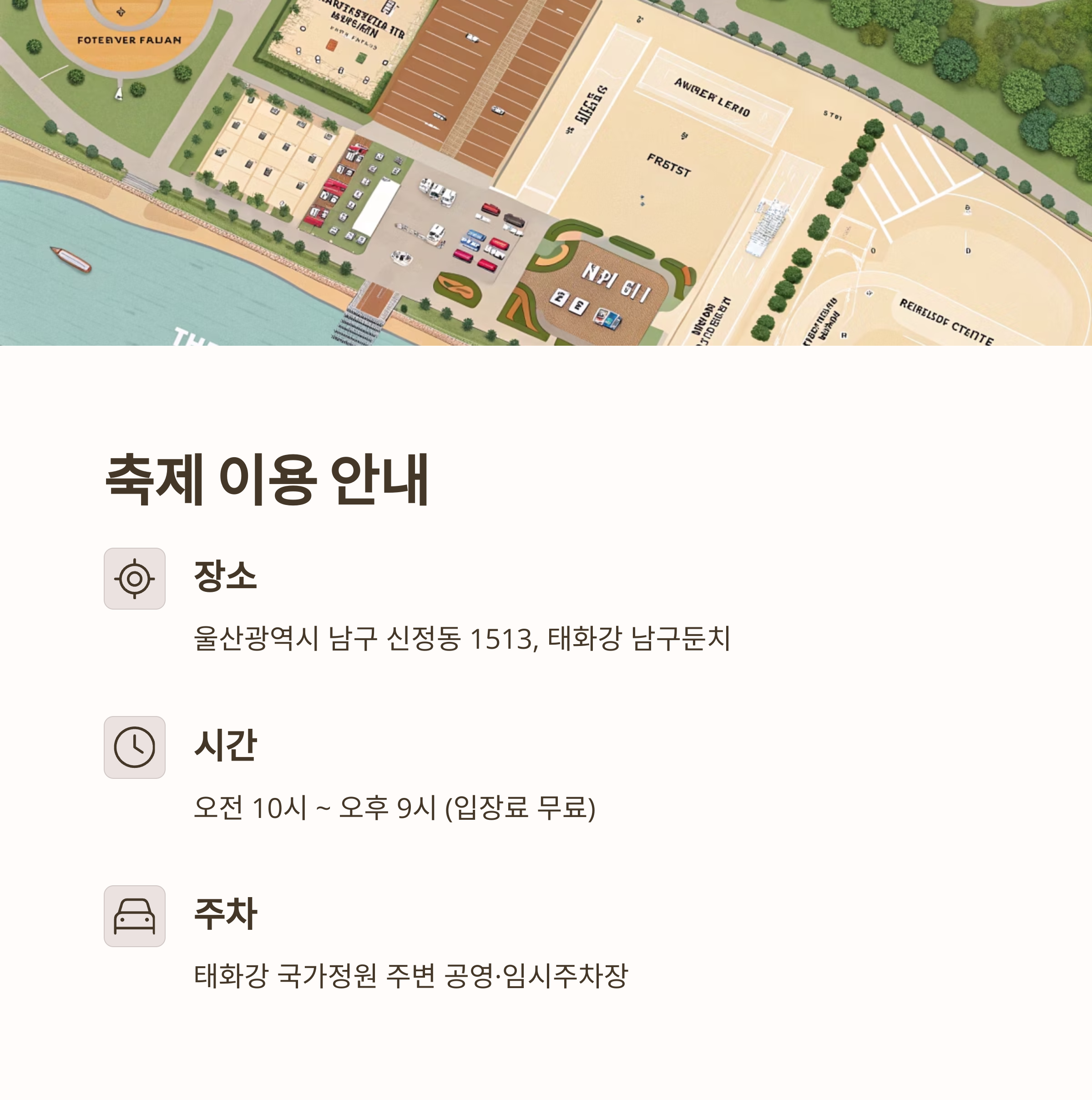 | 축제 장소 | 울산광역시 남구 신정동 1513, 태화강 남구둔치 |
