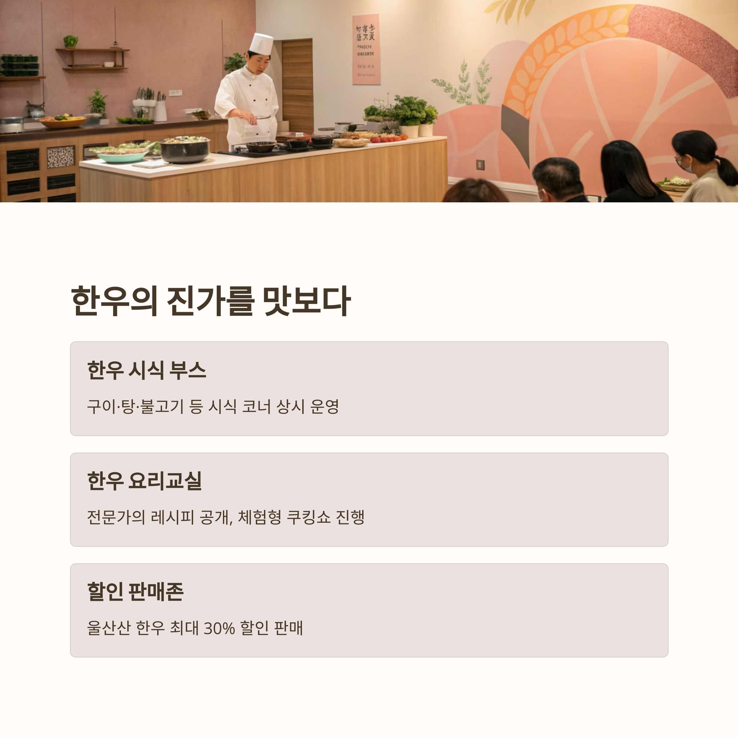| 한우 시식 부스 | 구이·탕·불고기 등 시식 코너 상시 운영 |