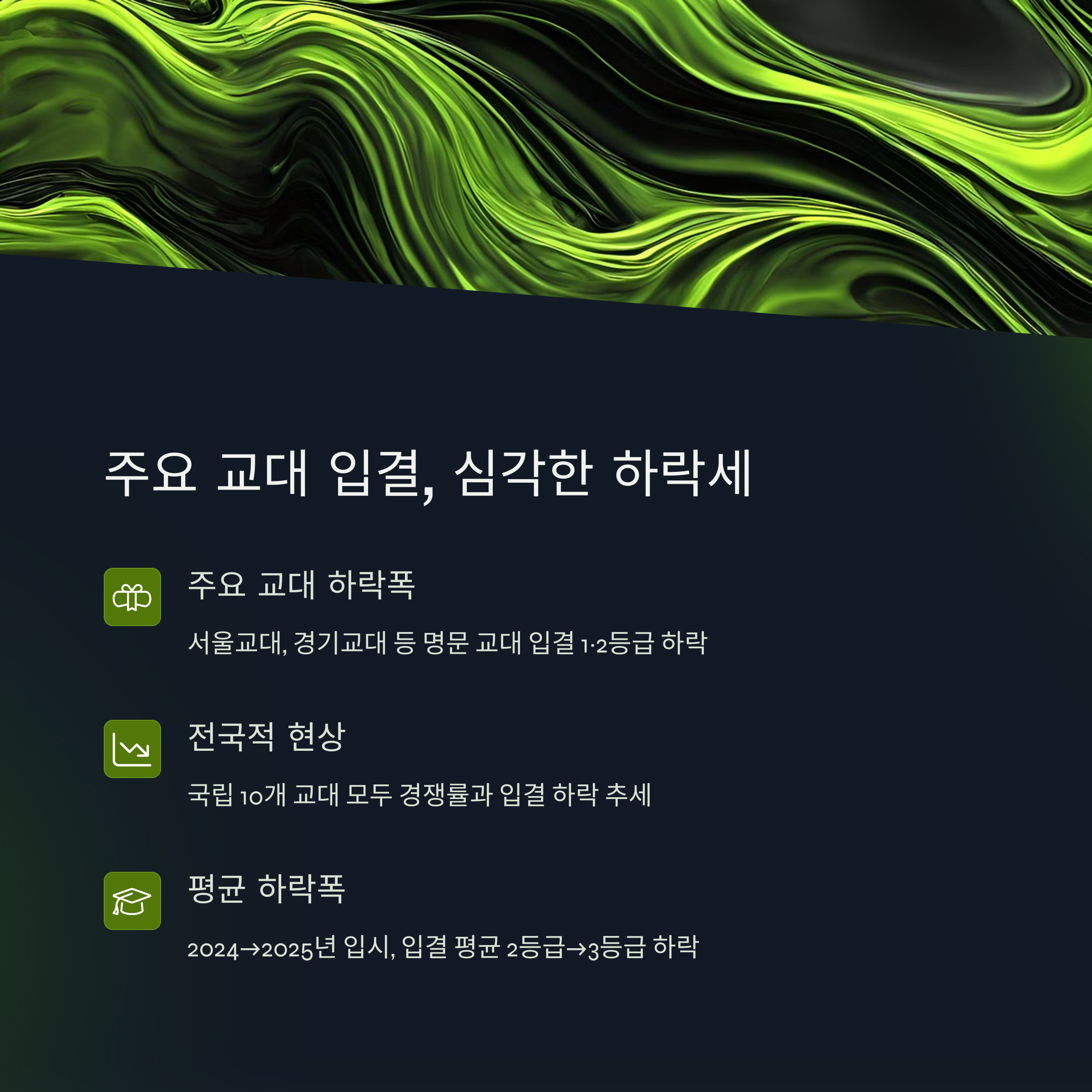 2025학년도 교대 입결은 전반적으로 하락세를 보이고 있습니다.