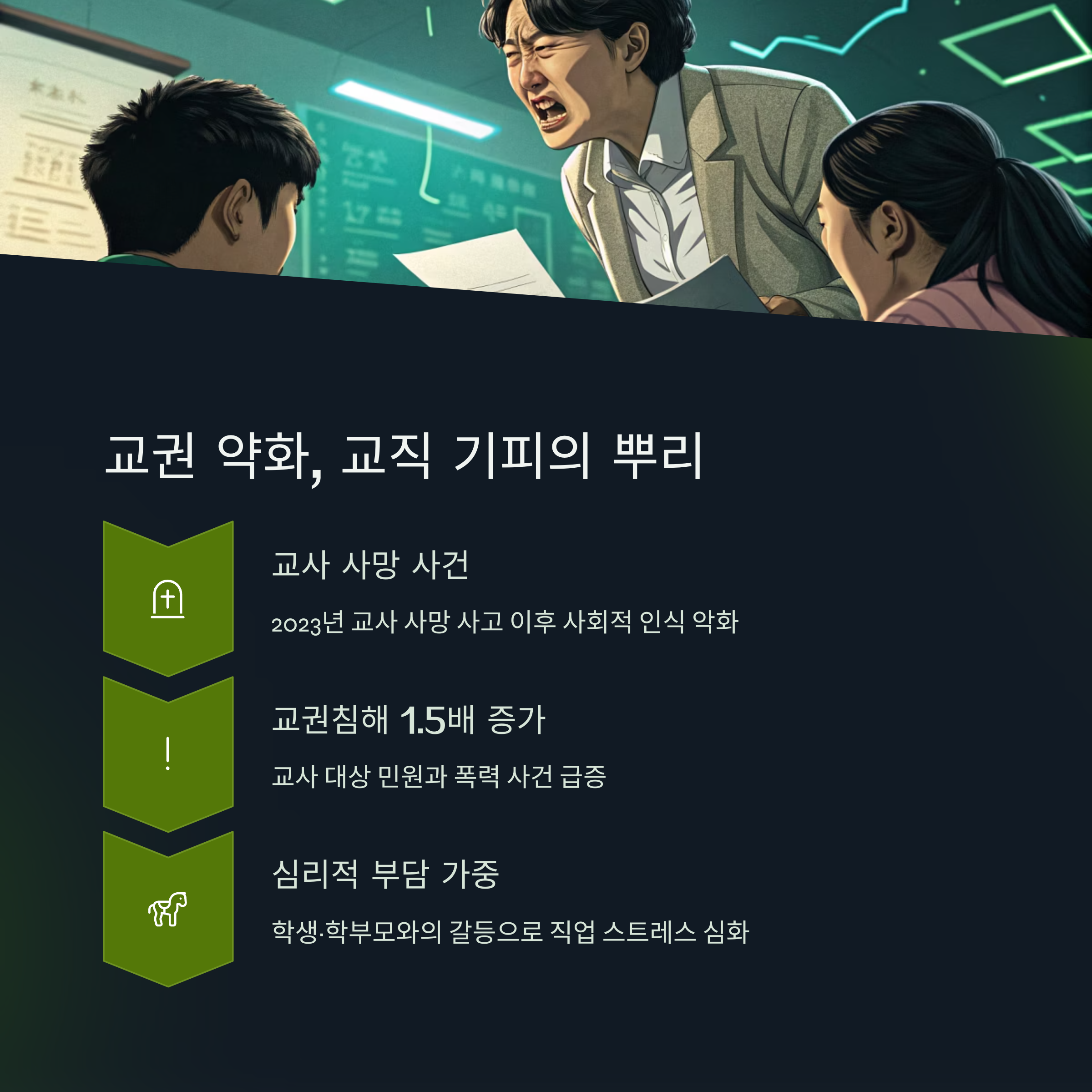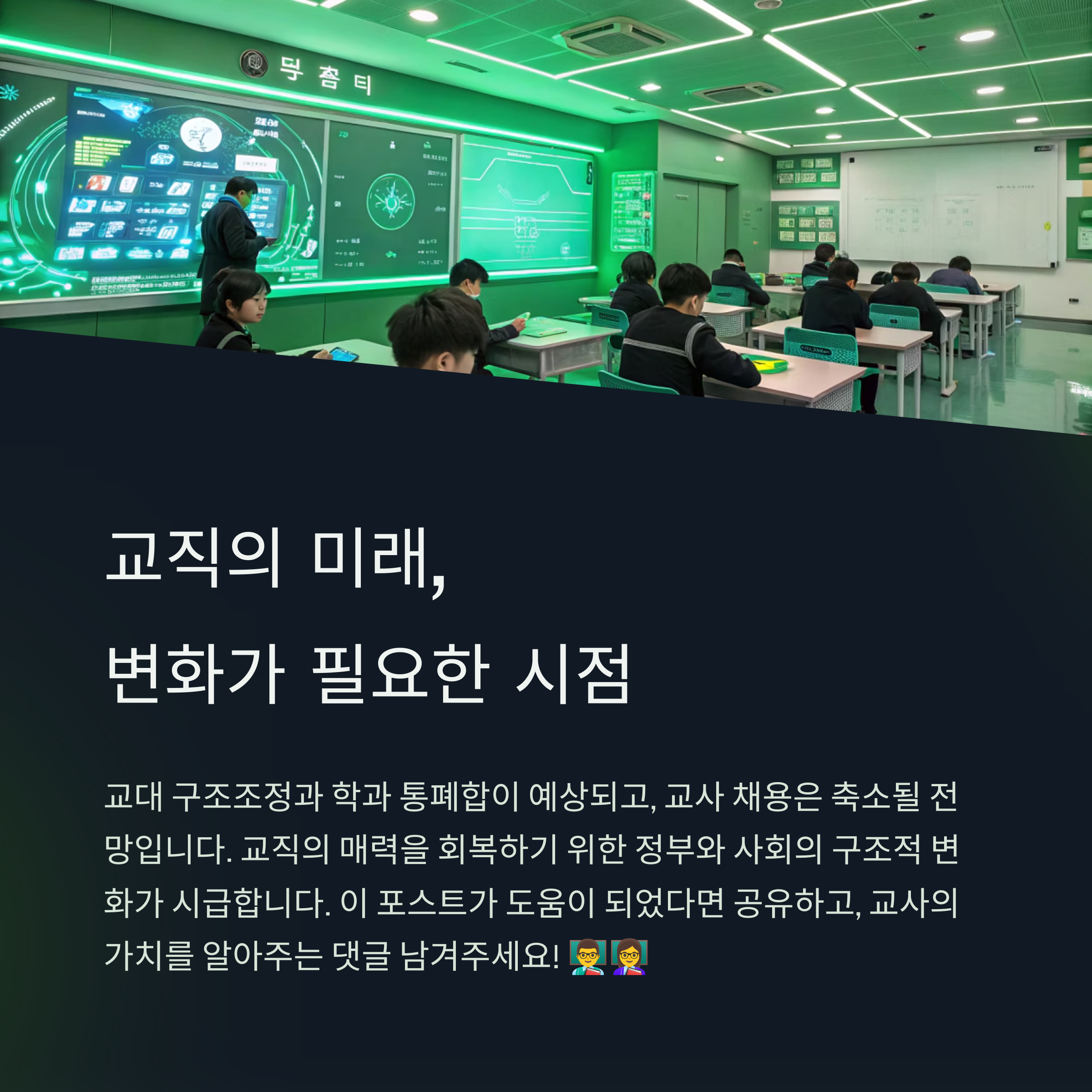 교직에 대한 사회적 존중과 실질적 처우 개선이 없다면, 위기는 지속될 것입니다.