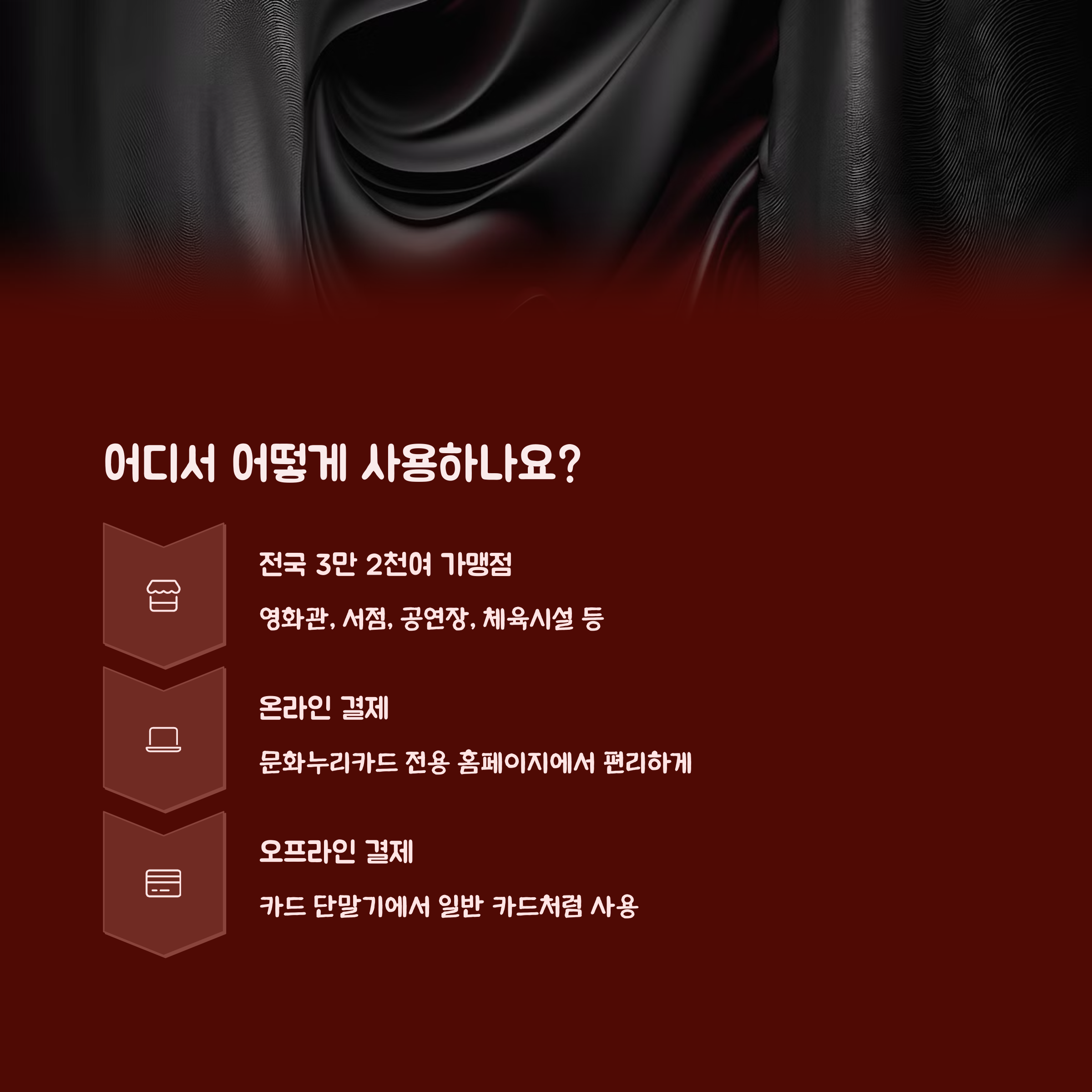 사용 가능한 품목과 가맹점은 문화누리카드 누리집에서 상세히 확인할 수 있습니다