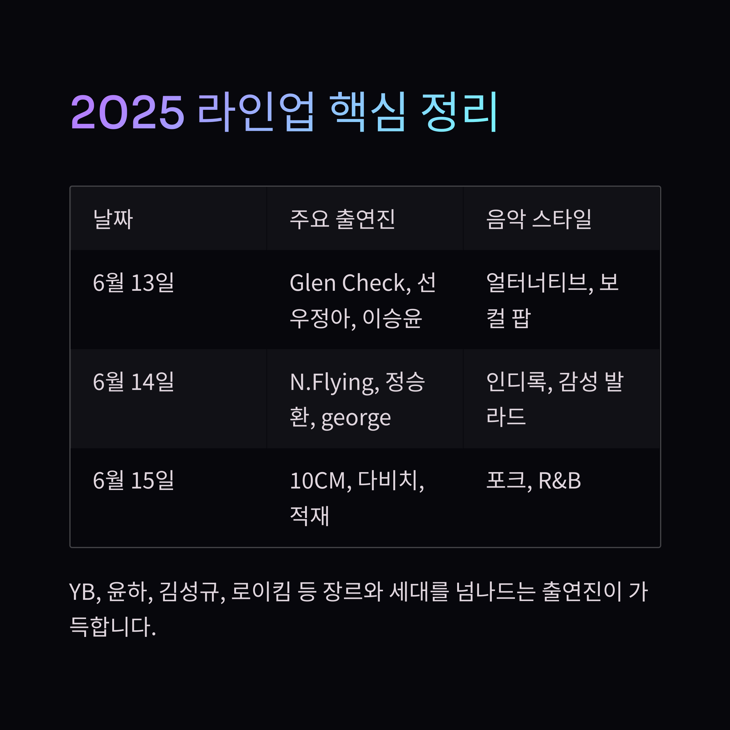 2025 최종 라인업 핵심 정리