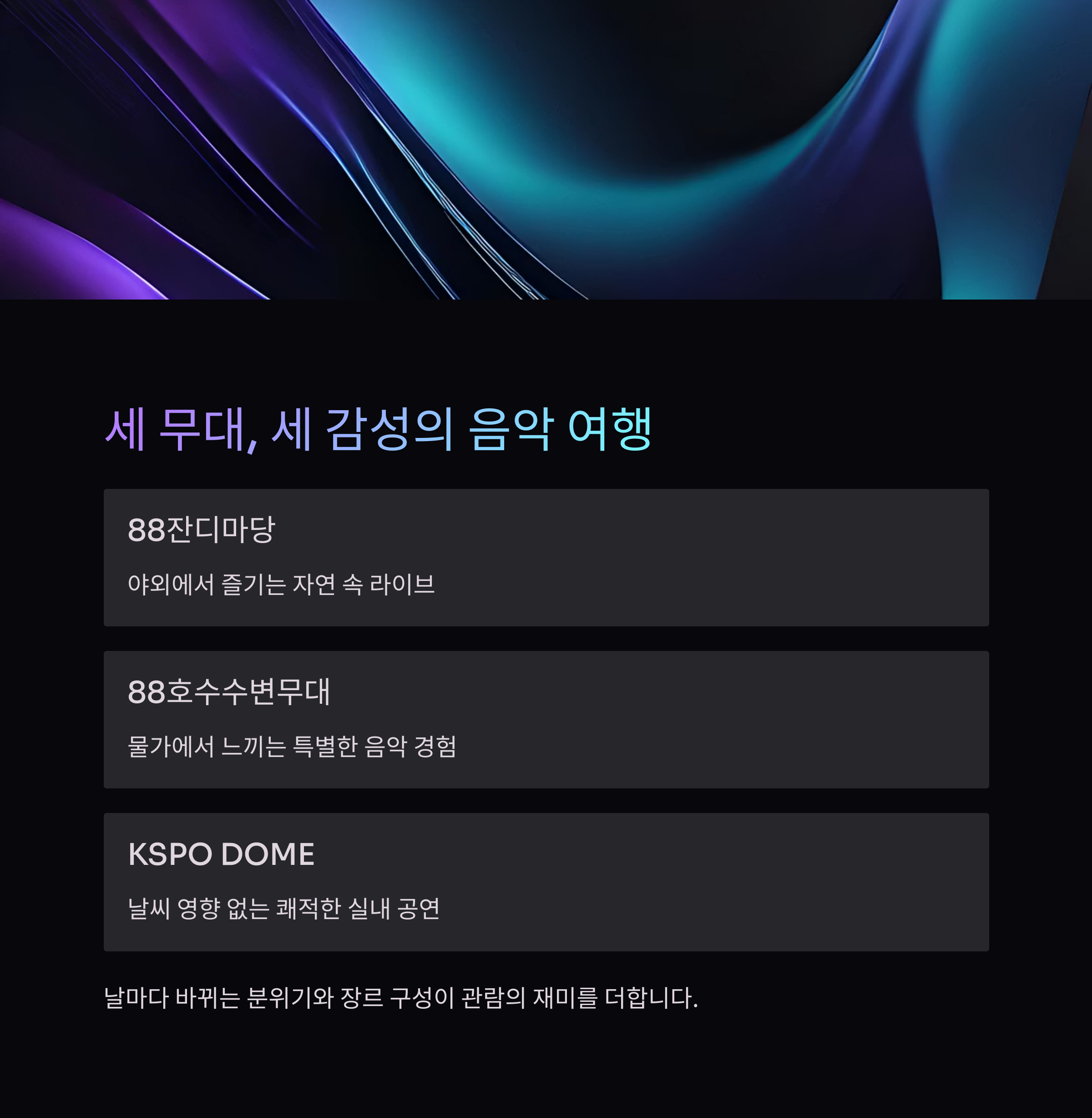 세 무대, 세 감성, 세 날의 음악