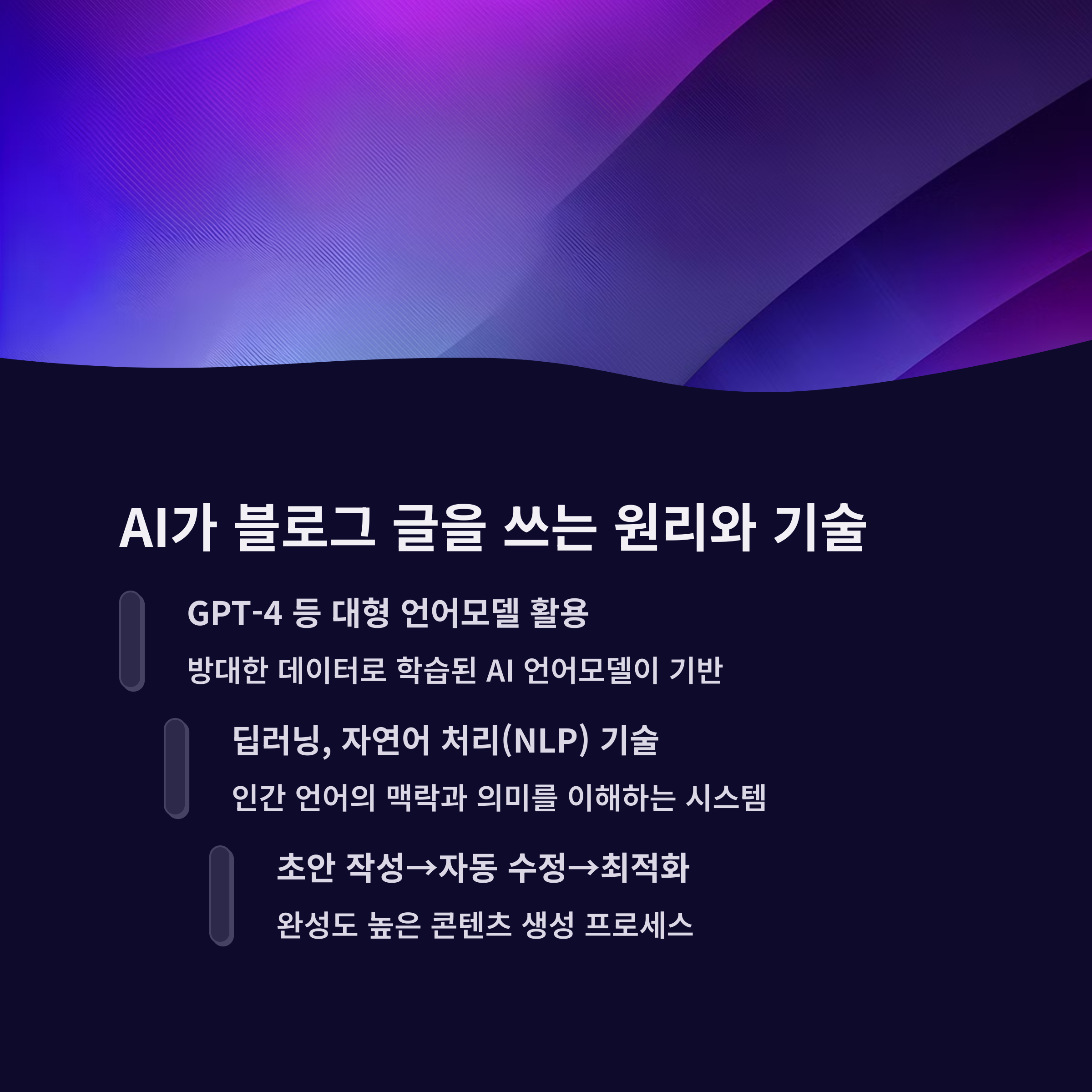 AI는 방대한 데이터 학습을 통해 문장 구조, 정보 흐름, 키워드 최적화까지 스스로 처리합니다