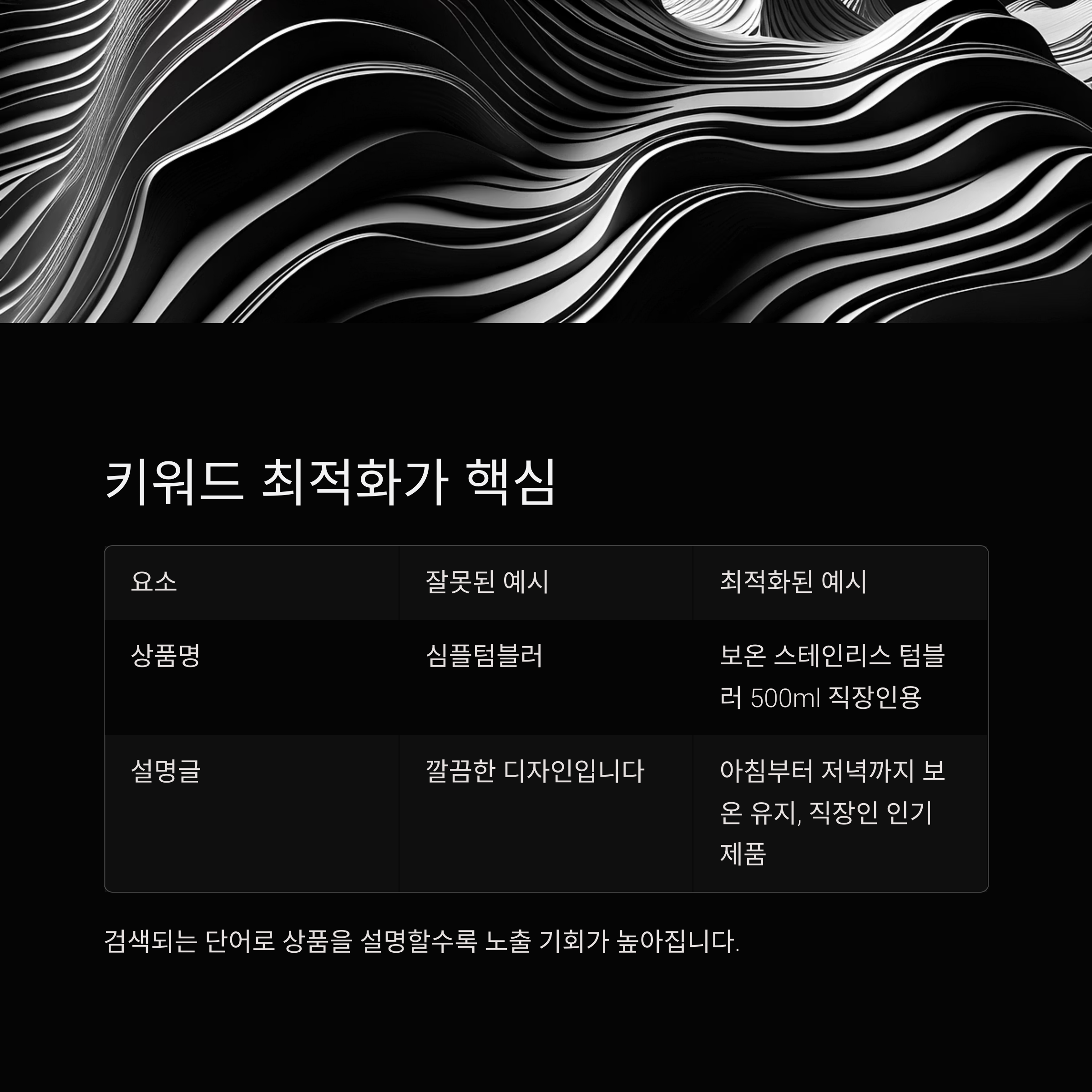 상품명과 상품 설명에 검색량 높은 키워드와 관련어를 반영해야